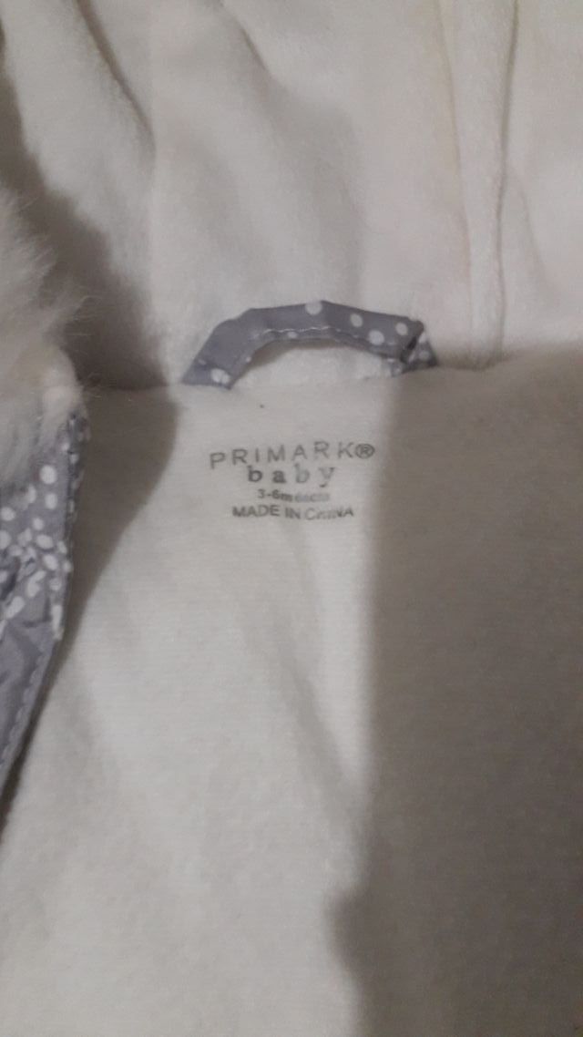 Detalles del productoSaco para capazo de la marca Primark Baby, ideal para bebés de 3 a 6 meses. Con un diseño de topitos grises sobre fondo blanco.