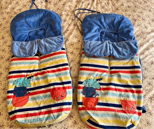 Detalles del productoSacos TUC TUC para carro de bebé. Muy cómodos y abrigados. Cremalleras con apertura a izquierda y derecha. Forrado con plástico en la zona de los pies, para cuando sean más mayorcitos y tengan zapatos. Fácil lavado. Aptos para carro gemelar. 20€ cada uno.