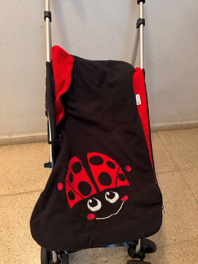 Detalles del productoCarrito de bebé con un divertido diseño de mariquita para el invierno, y con funda naranja para el verano.