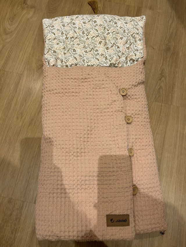 Detalles del productoSaco marca Jané para carrito de bebé. Sirve para cuco y para silla ya que tiene aberturas para poder pasar los cinturones de seguridad del carrito. El saco lo hemos usado a penas dos meses y está nuevo. Lo compramos en el corte inglés y su precio original es de 65 €. Es de color rosa y por dentro es de florecitaa. Algodón.