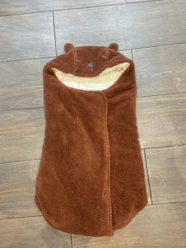 Detalles del productoSaco de cochecito para bebé con diseño de oso. Apenas usado, está como nuevo, marca Kiabi
