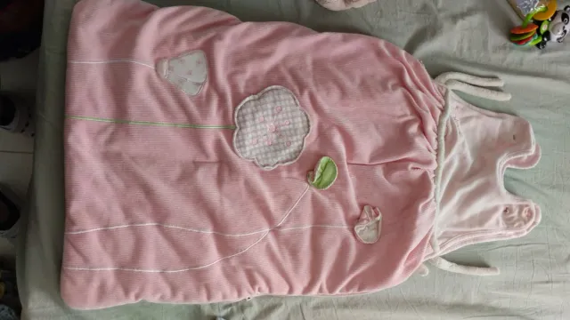 Saco de bebé en color rosa, perfecto para mantener a tu pequeño abrigado. - Material suave y cómodo. - Cierre con cordones en la parte superior.