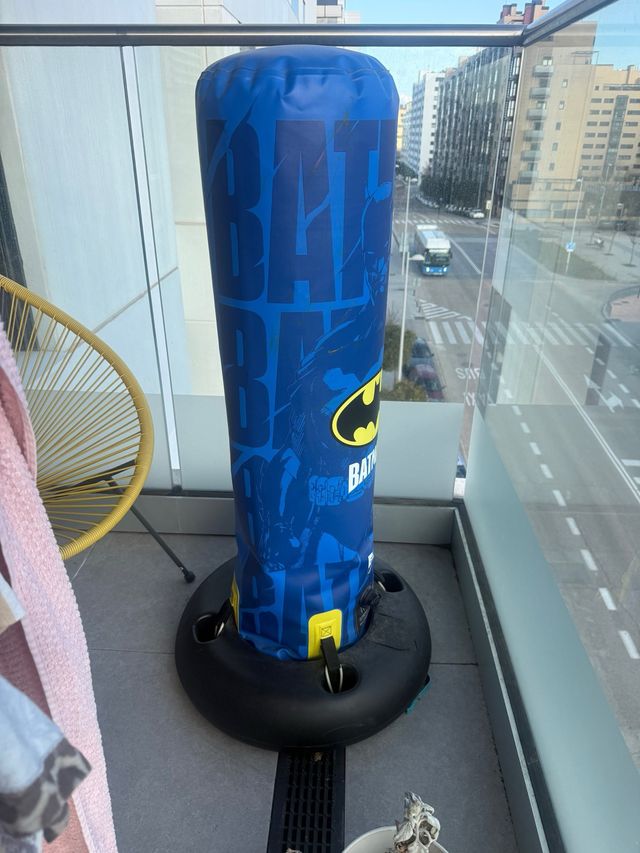 Saco de boxeo inflable con diseño de Batman. Ideal para entrenar. - Color azul con estampado de Batman. - Base ancha para mayor estabilidad.