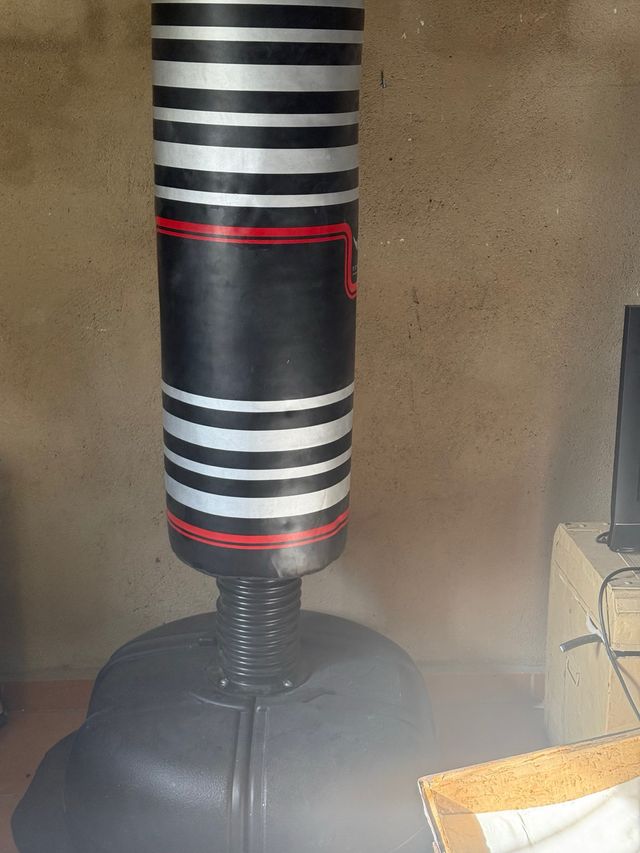 Set de boxeo completo para entrenar. - Saco de boxeo con base. - Guantes de boxeo. - Vendas de boxeo.