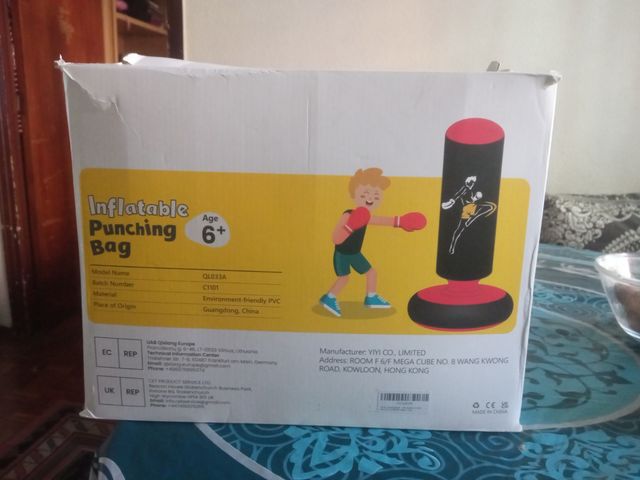 Vendo saco de boxeo infantil inflatable de 6año+ mas descripciones en la caja original