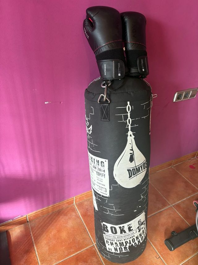 Detalles del productoSe vende saco de boxeo con guantes.