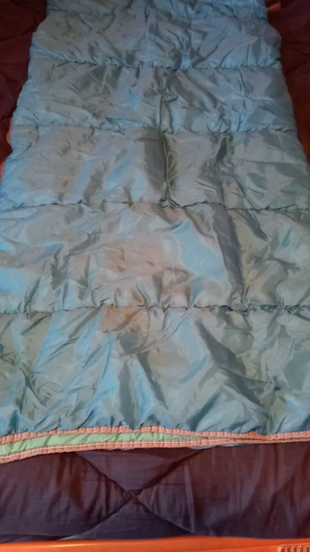 Detalles del productoSaco de dormir de color azul, ideal para camping o actividades al aire libre. Presenta un diseño acolchado para mayor comodidad.