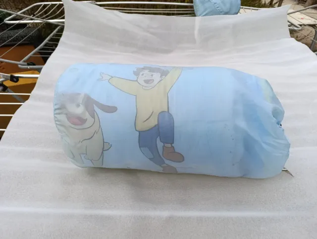 Saco de dormir con un divertido diseño de Heidy y su perro. - Estampado infantil. - Tonos azules y beige.