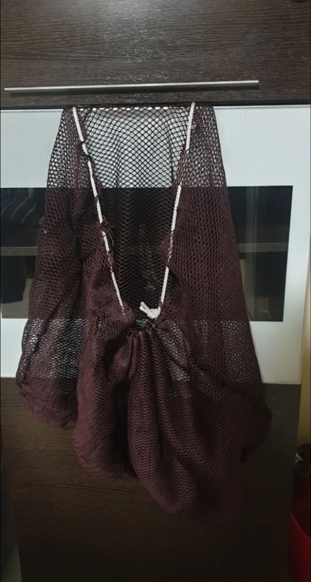 Saco de red nailon hecho a mano con malla estrecha y gruesa.