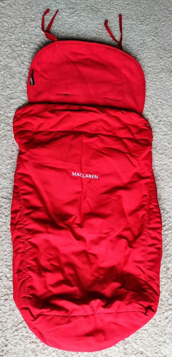 Saco para silla de paseo de la marca Maclaren. - Color rojo - Tejido exterior impermeable. - Forro interior suave. - Aberturas para arnés.