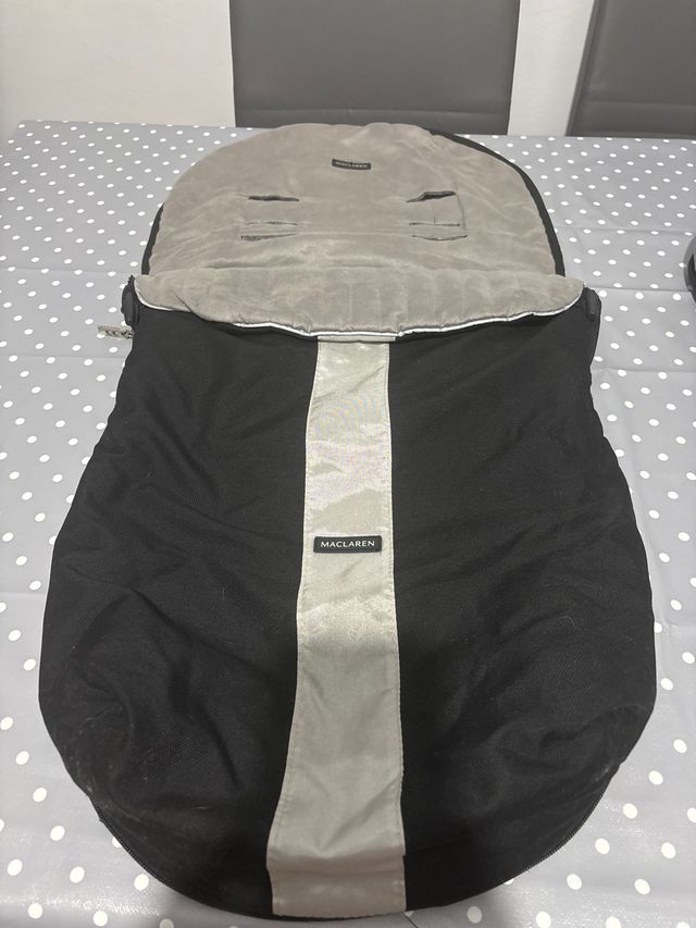 Saco para silla de paseo de la marca Maclaren en color negro y gris. - Diseño acolchado. - Detalle de banda central reflectante. - Aberturas para arnés.