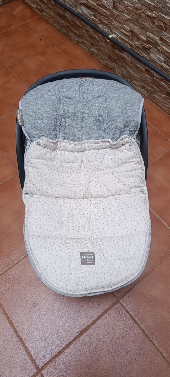Detalles del productoSaco para silla de coche Grupo 0 de la marca Walking Mum. Con un diseño moderno y acolchado.