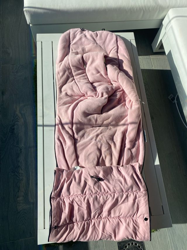 Saco de invierno en color rosa para carritos Bugaboo. Mantiene al bebé abrigado durante los meses más fríos. - Material suave y acolchado. - Diseño adaptable.