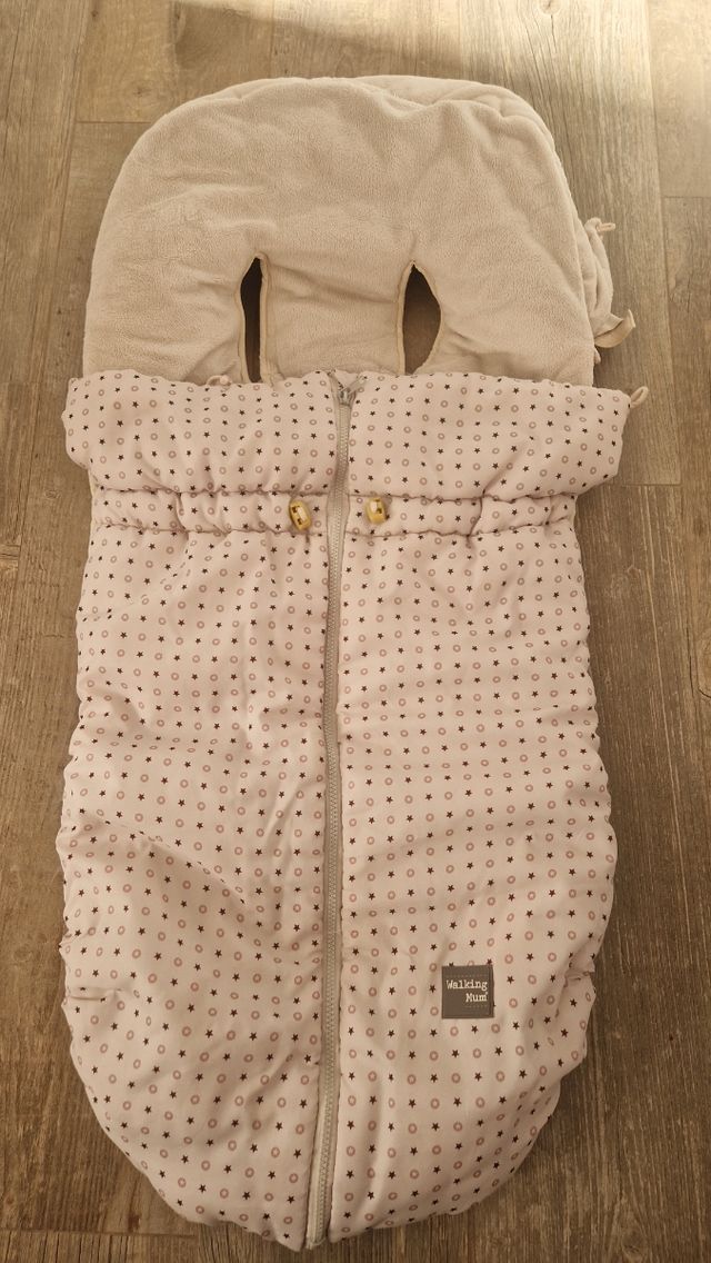 Detalles del productoSaco de invierno para la silla del carrito de paseo de la marca walking mum,es universal. Está usado pero en perfecto estado. Puede servir hasta los 2-3 años. Con relleno,muy calentito y cómodo al abrirse por medio. Lleva su funda original.