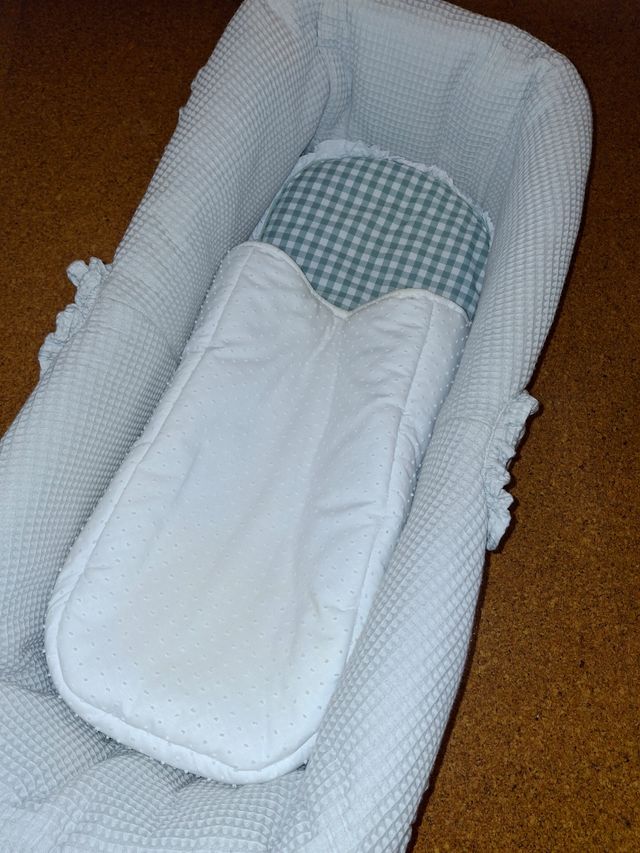 El cubre capazo es en piqué con forro interior que se puede sacar. (No se ha usado)