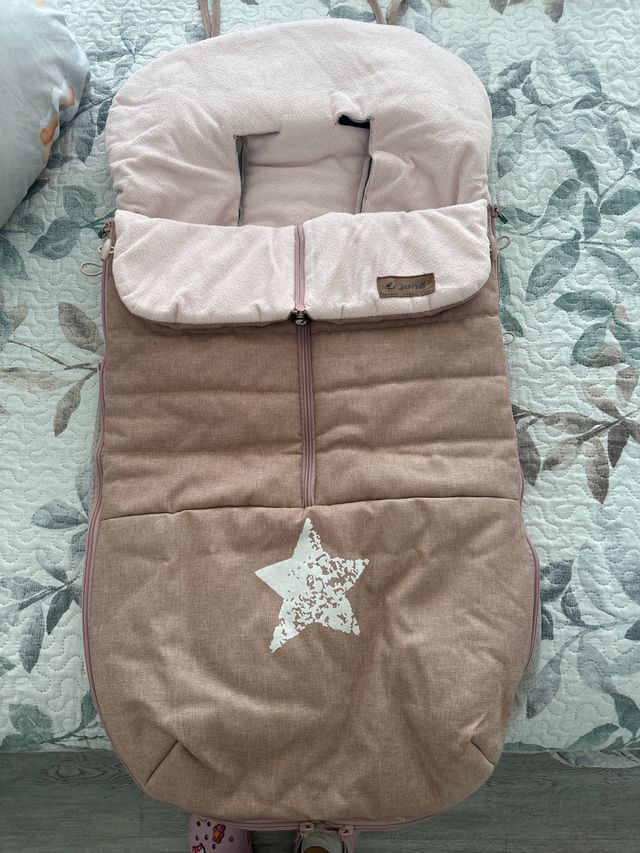 Saco para silla de paseo en color rosa, con un diseño acolchado y un detalle de estrella. - Color: Rosa. - Diseño: Acolchado con estrella. - Marca: Jane. Es universal