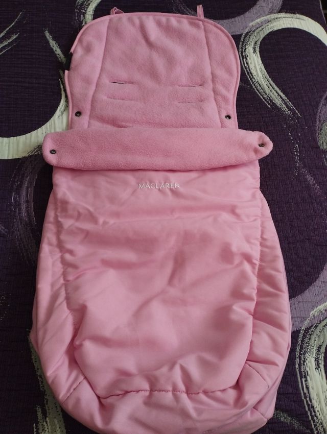 Detalles del productoSaco de invierno para silla de paseo de la marca Maclaren. Color rosa.