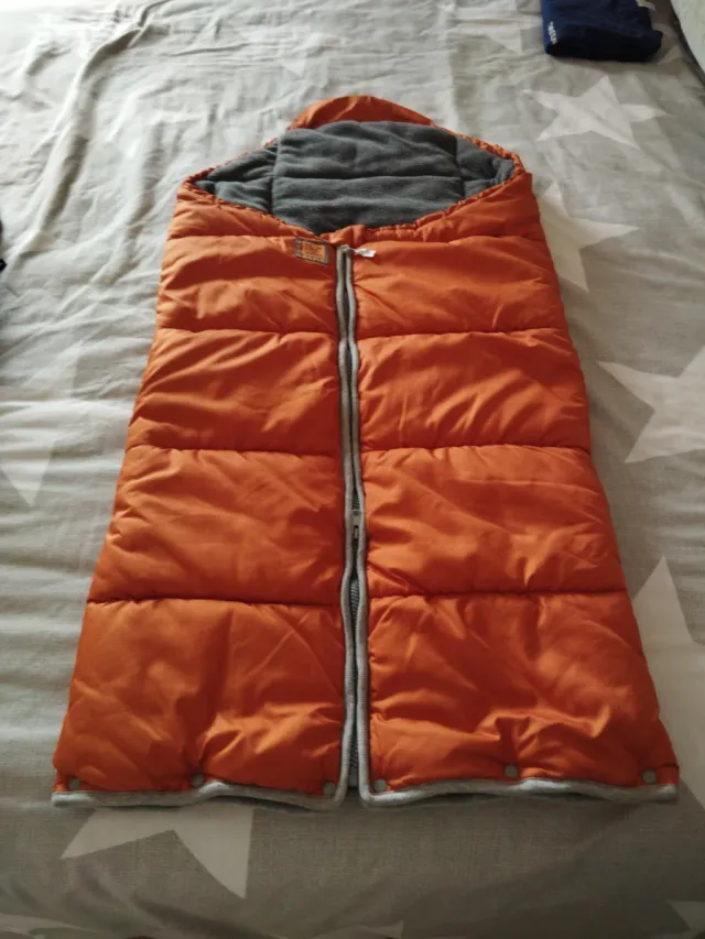 Saco de invierno para silla de paseo de bebé, en color naranja y con interior gris. - Exterior acolchado. - Cierre con cremallera. - Forro interior suave.