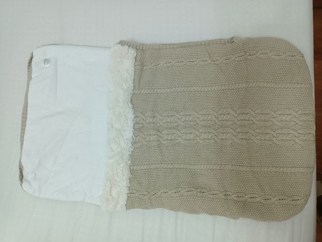 Detalles del productoSaco para silla de bebé con un diseño tejido y forro interior suave.