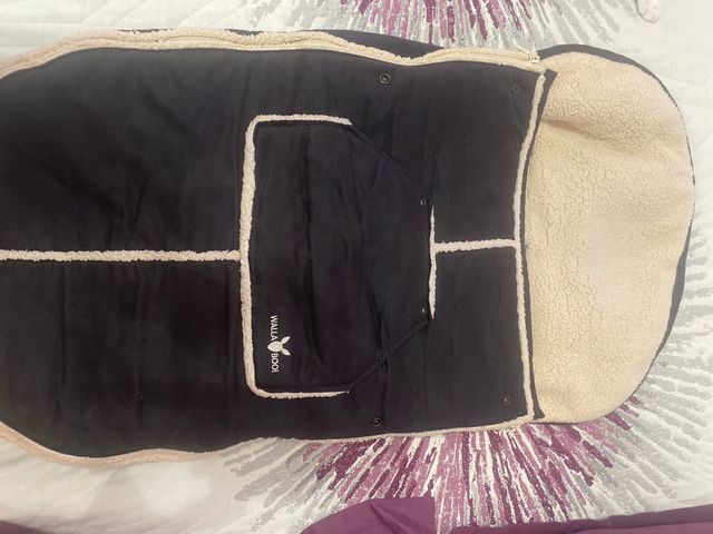 Saco para silla de paseo con interior forrado de borreguito. - Color negro. - Forro interior beige. - Detalle de ribete. - Marca: Wallaboo.