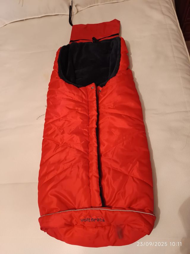Detalles del productoSaco de invierno para silla de paseo, de color rojo y con interior negro.
