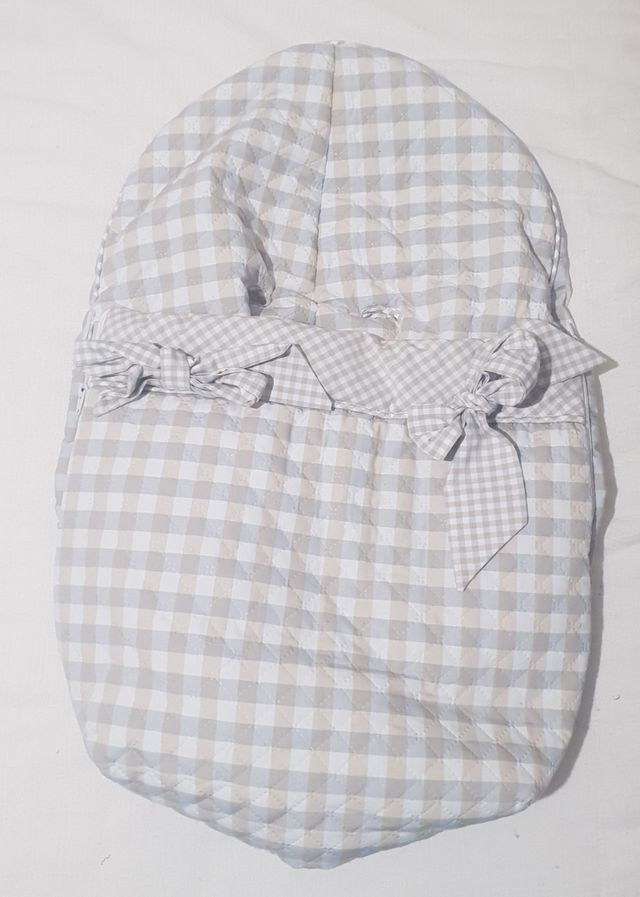 Detalles del productoSaco para silla de bebé Maxicosi, hecho en cuadro vichi en todos de color beige y azul pastel.