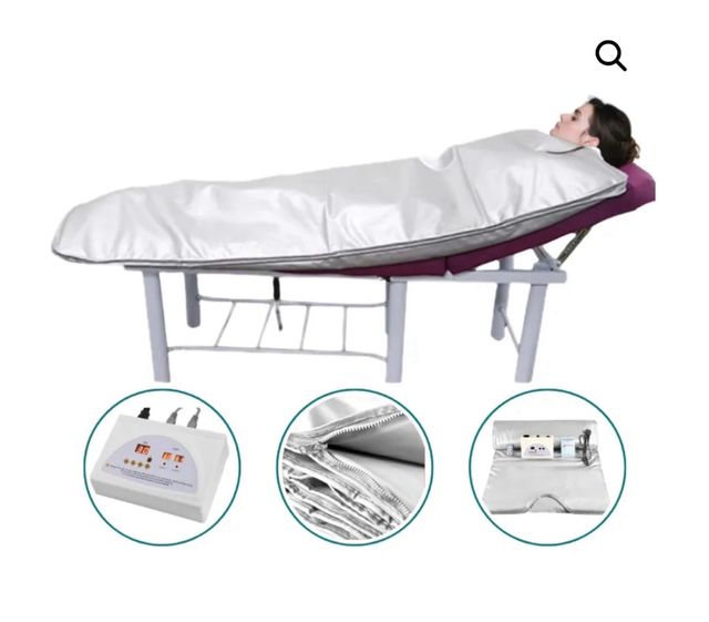 Detalles del productoSaco de sauna para tratamientos de bienestar. Diseñado para ofrecer una experiencia de calor envolvente.