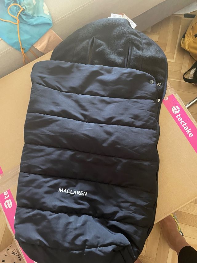 Detalles del productoSaco de silla para cochecito de la marca Maclaren. Color negro.