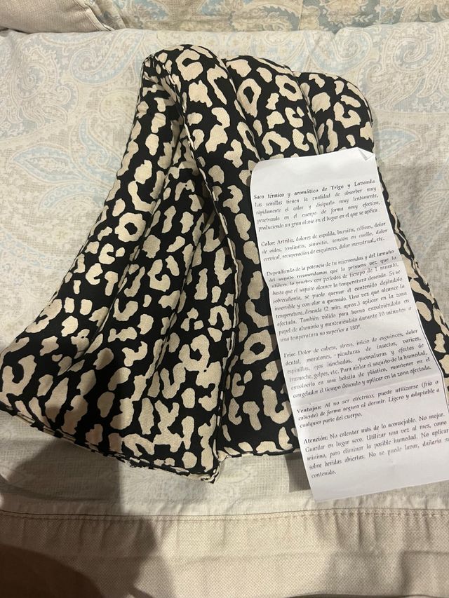 Detalles del productoSaco térmico y aromático relleno de semillas de trigo y lavanda. Diseñado para absorber y disipar calor de forma efectiva.