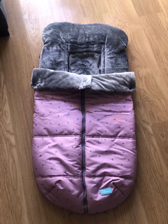 - Exterior en color rosa pálido con estampado de cruces. Impermeable