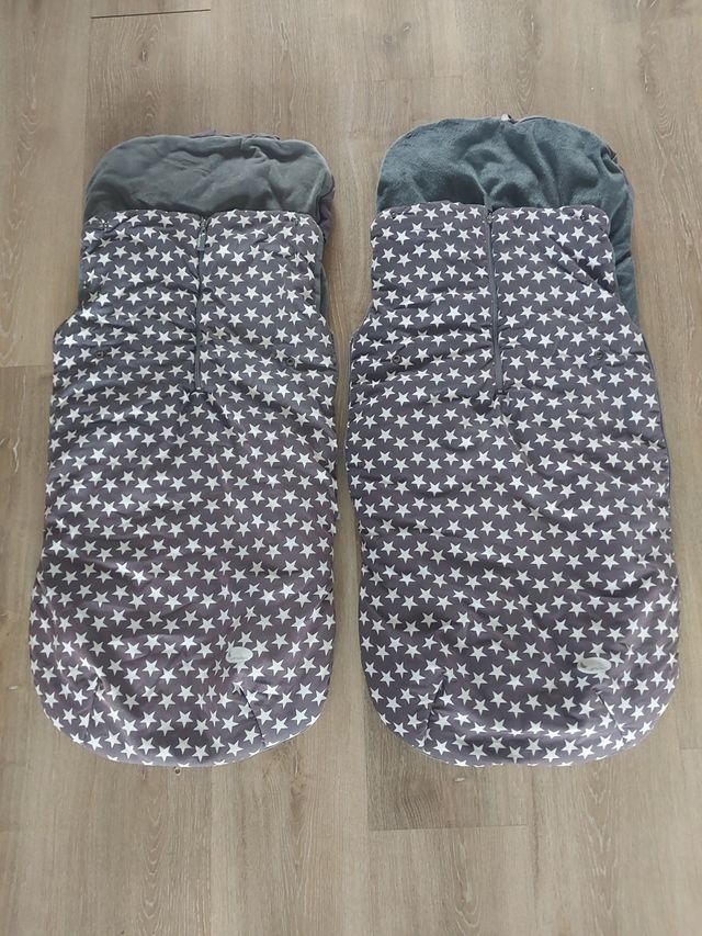 Detalles del productoVendo 2 sacos de invierno marca Interbaby para silla de paseo, con diseño unisex de color gris con estrellas blancas, y forro interior de tejido suave y acolchado tipo polar.