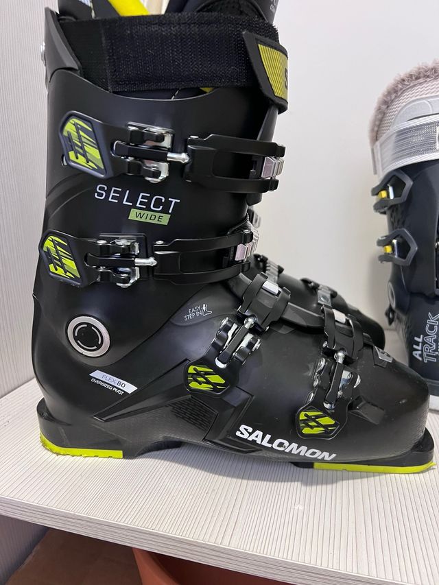 Detalles del productoBotas de esquí alpino Salomon Select 80 Wide en color negro con detalles en amarillo.