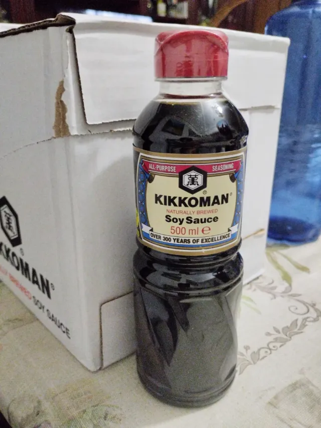 Detalles del productoBotella de salsa de soja Kikkoman, ideal para todo tipo de platos.