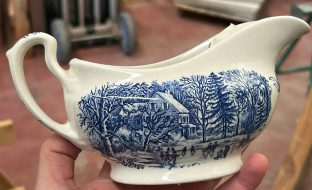 Detalles del productoAntigua salsera con un bonito diseño de escena invernal.