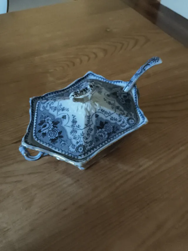 Salsera porcelana inglesa azul y blanca