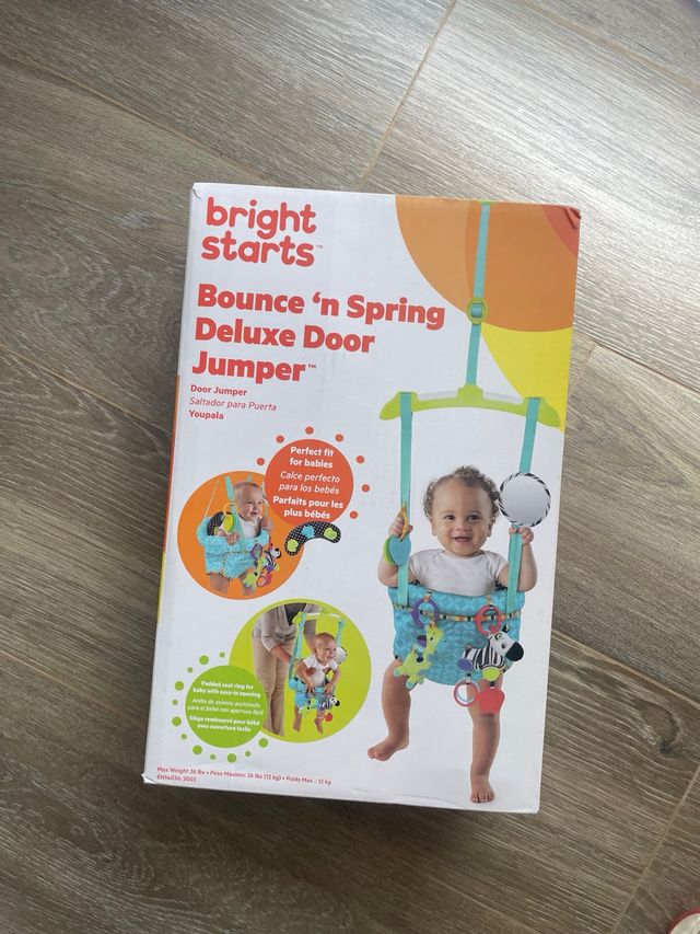 Detalles del productoSaltador de puerta marca Bright Starts, modelo Bounce 'n Spring Deluxe Door Jumper.