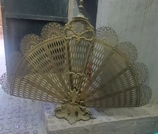 Elegante salvachispas o chispero antiguo con diseño de abanico. - Fabricado en bronce. - Detallado trabajo ornamental.