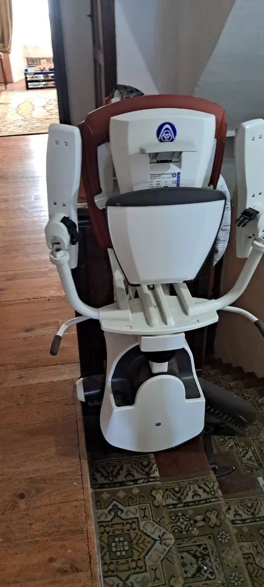Salvaescaleras Flow2 en buen estado. - Diseño moderno y funcional. - Asiento cómodo y ergonómico. - Reposabrazos para mayor seguridad. - Base estable y robusta.