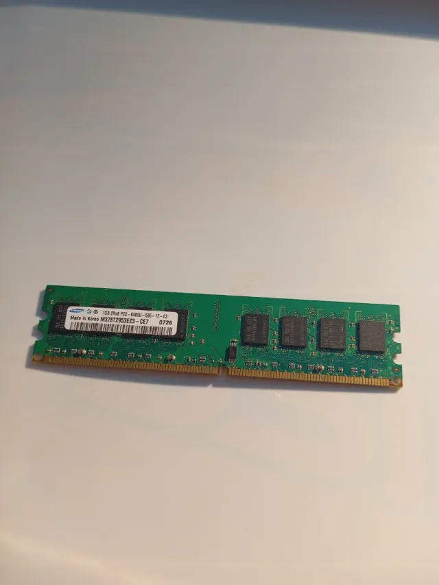 Módulo de memoria RAM Samsung. - Capacidad: 1GB - Tipo: DDR2 - Velocidad: PC2-6400 (800MHz) - Fabricado en Corea.