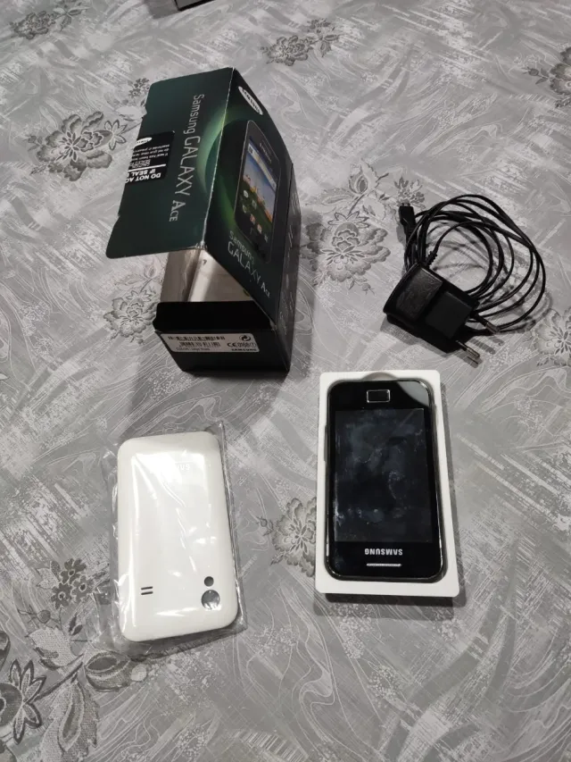 Teléfono móvil Samsung Galaxy Ace con su caja original y accesorios. - Incluye cargador. - Incluye funda protectora blanca.