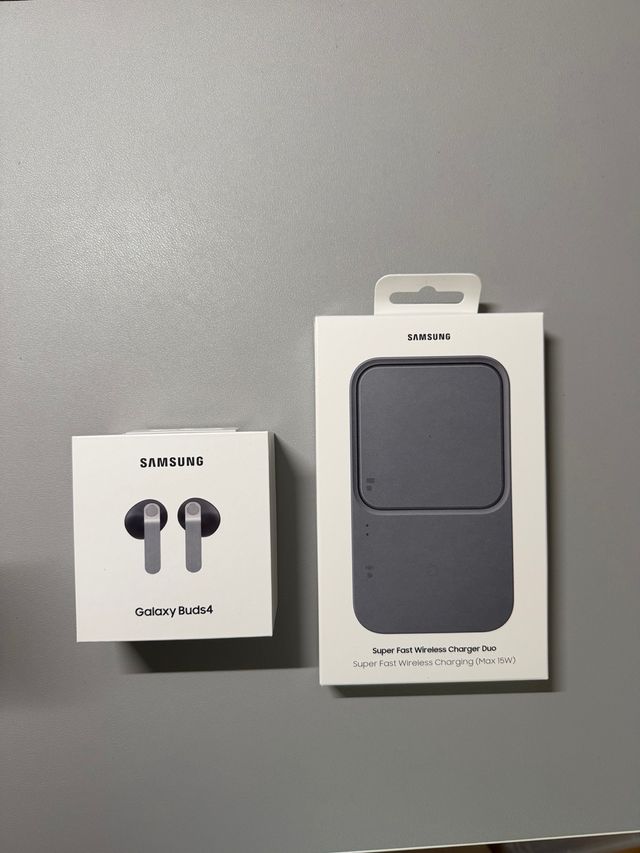 Detalles del productoSe vende pack de auriculares inalámbricos Samsung Galaxy Buds4 y cargador inalámbrico Duo.