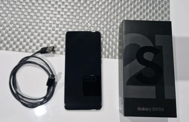 Detalles del productoTeléfono móvil Samsung Galaxy S21 5G en color negro. Incluye cable de carga.