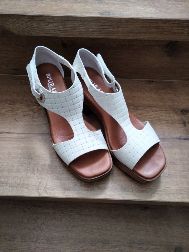 Sandalias de piel con plataforma, suela mullida. Puestas una vez