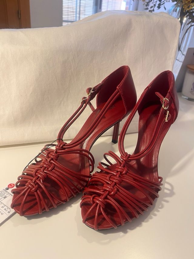 Sandalia tacón tipo cangrejera- Zara (t. 39)