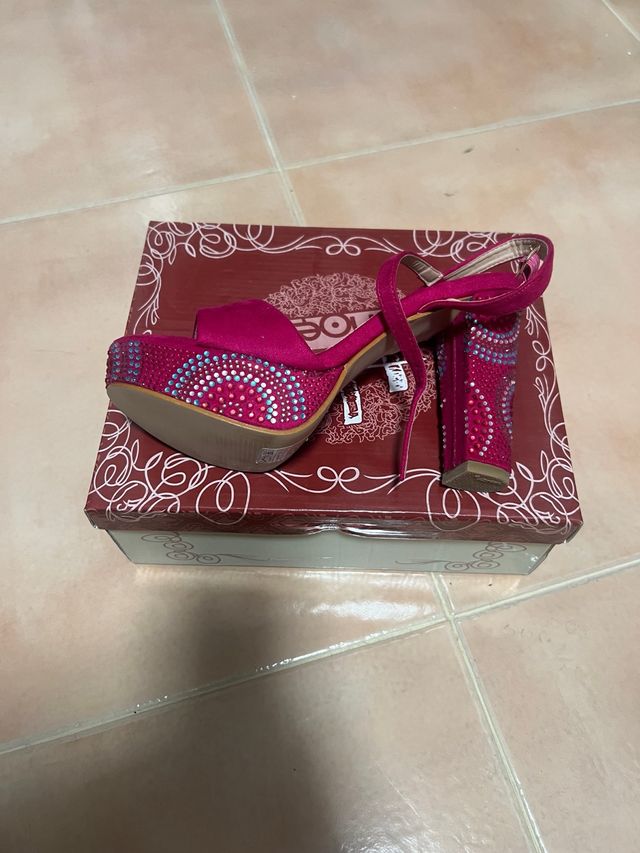 Sandalias Antelina Rosa Fucsia Brillantes