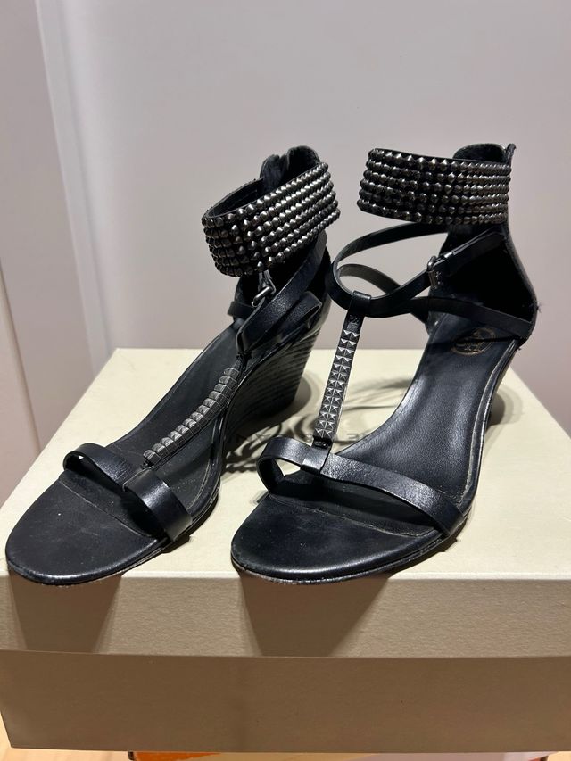 Sandalias de cuña con un diseño atrevido y detalles de tachuelas.