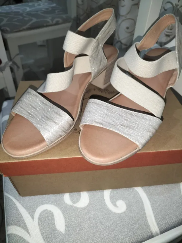 Sandalias Beige, blancas y destellos plata Mujer