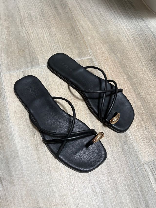 Sandalias Bershka negras con detalle dorado