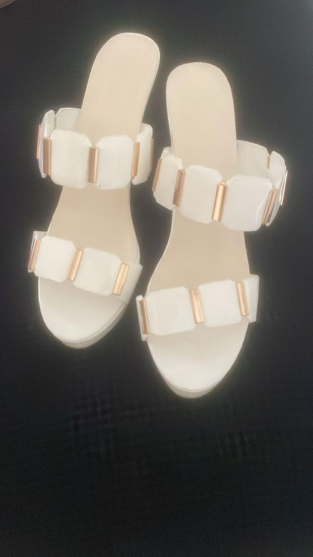 Sandalias blancas y doradas mujer