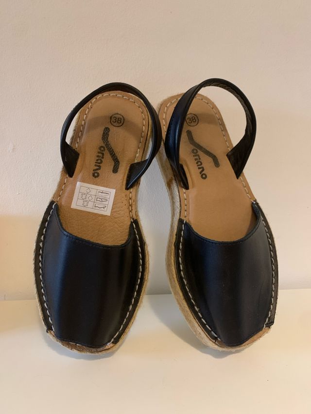 Sandalias color negro, son de cuero. - Talla 38. - Diseño con tira trasera. - Suela de esparto.